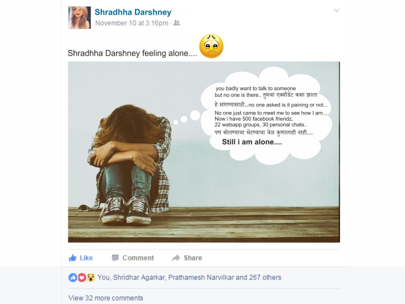 (तिच्या फेसबुक वर तासाभरात 270 लाईक्स आणि 32 कमेंट्स)
