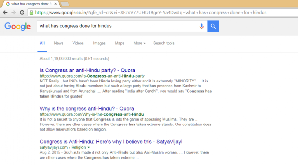 २०१४ च्या निवडणूक निकालांनंतर काही दिवसांनी काँग्रेसनं एक आत्मचिंतनपर बैठक घेतली. त्यानंतर बाहेर येऊन काँग्रेसचे तत्कालीन उपाध्यक्ष आणि युवा नेते राहूल गांधी यांनी असं सांगितलं की काँग्रेस पक्षापासून हिंदू समाज दुरावल्यामुळेच आजचा हा पराभव झाला आहे. इतके दिवस मशिदी आणि चर्चचे उंबरे झिजवण्यात धन्यता मानणारे गांधी घराणे एकाएकी हिंदू मंदिरांकडे कसे वळले याचं कारणच बऱ्याच जणांना कळेना. बर गेले ते गेले त्यातही कपाळाला चक्क कुंकू, गंध लावून घेतलं आणि गळ्यात हारही घालून घेतला. हे म्हणजे अतीच झालं बुवा. सेक्युलर माणसांना हे शोभतं का. सेक्युलर लोकांनी कसं मिशिदीत जावं, चर्चमध्ये जावं, ईद आणि ख्रिसमसच्या शुभेच्छा द्याव्यात आणि हिंदू सणांना पर्यावरण पूरक करा वगैरे सल्ले द्यावेत. लोकांनाही त्यांच्याकडून हीच सवय असते. मात्र राहूल गांधींनी हे भलतंच धाडस केलं. इतकंच काय काँग्रेसनं आजपर्यंत देशातल्या हिंदू समाजाकरिता काय केलं असा प्रश्न आपण गुगलवर विचारला की गुगलच आपल्याला विचारते की काँग्रेस अँटी-हिंदू आहे का. म्हणजे जे सत्य गुगललाही ठावूक आहे ते सामान्य भारतीयांना कळायला २०१४ उजाडावं लागलं.