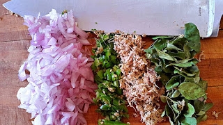 बारीक चिरलेला हिरव्या मिरच्या दोन आलं छान सातारी एक इंच तुकडा कडीपत्ता दोन चमचे