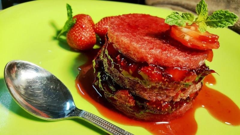 आता उरलेला ज्यूस पुन्हा मगासच्या पसरट भांड्यात घ्या. यात अजून एक २५ मिली पाणी घाला आणि आता यात उरलेली अर्धी स्ट्रॉबेरी यात घाला आणि व्यवस्थित शिजवून घ्या.