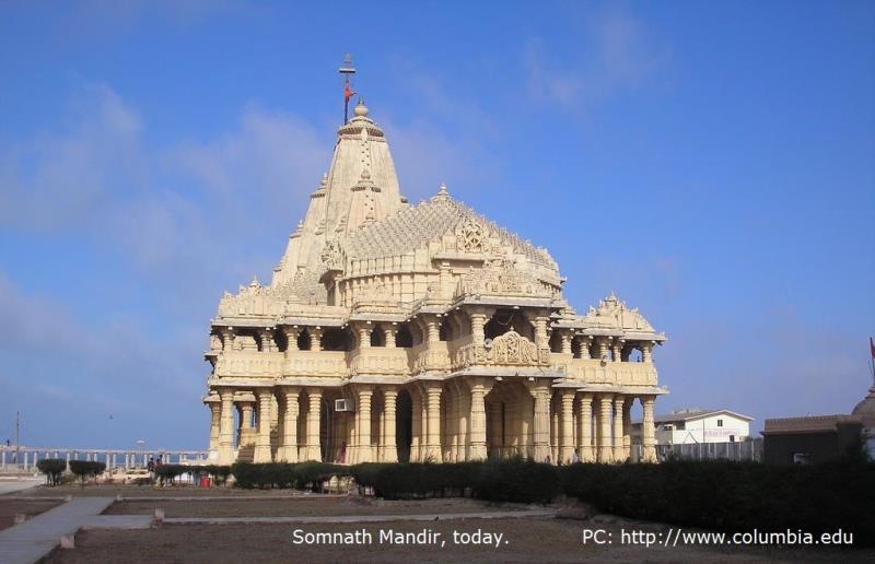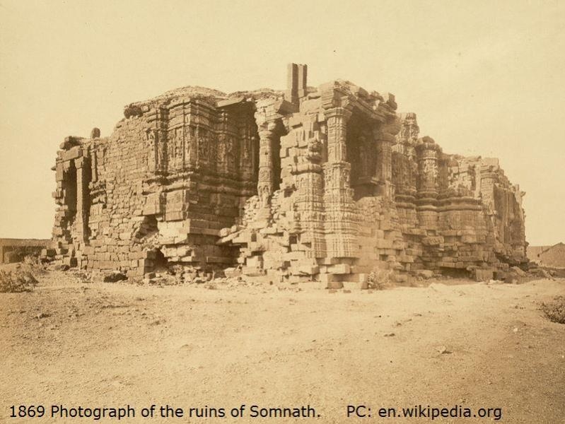 “असो. प्रत्येक वर्षी भारतावर एक जिहादी हल्ला करण्याचा चंग बांधलेल्या मुहम्मदने, १०२७ मध्ये सोमनाथवर हल्ला केला. मंदिराच्या रक्षणार्थ उभ्या राहिलेल्या हजारो हिंदूंची कत्तल करून, मंदिर लुटले. त्याने सोमनाथचे शिवलिंग तोडून त्याचे तुकडे गझनीच्या जामा मशिदीच्या पायऱ्यांवर बसवले असे म्हणतात. १०३० मध्ये मुहम्मद मेल्यावर, सोमनाथच्या मंदिराचे चंदनाचे दरवाजे त्याच्या स्मारकाला लावले.