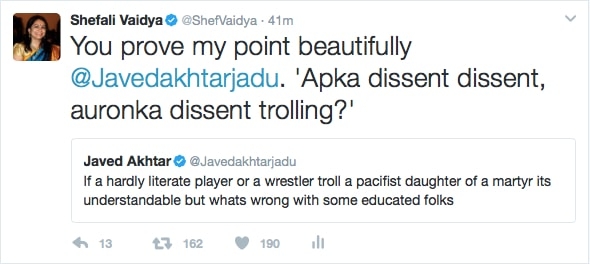 मीडियाची, स्वतःला पुरोगामी म्हणवून घेणाऱ्या विचारवंतांची भूमिका आहे की केवळ गुरमेहेर कौरला तिला काय वाटतं ते तिला हव्या त्या शब्दात सांगायचा हक्क आहे, मग ती मते इतरांना देशविरोधी का वाटेनात, पण तिच्या विधानाला कुणी हरकत घेतली, मग ती कितीही सभ्य शब्दात का असेना, ती व्यक्ती लगेच असभ्य, शिवराळ ट्रोल ठरवली जाते. कारण ‘पुरोगामी विचारवंत' माफियाने ठरवून दिलेल्या भूमिकेशी विसंगत अशी भूमिका ह्या देशात कुणी घेऊच कसं शकतं?