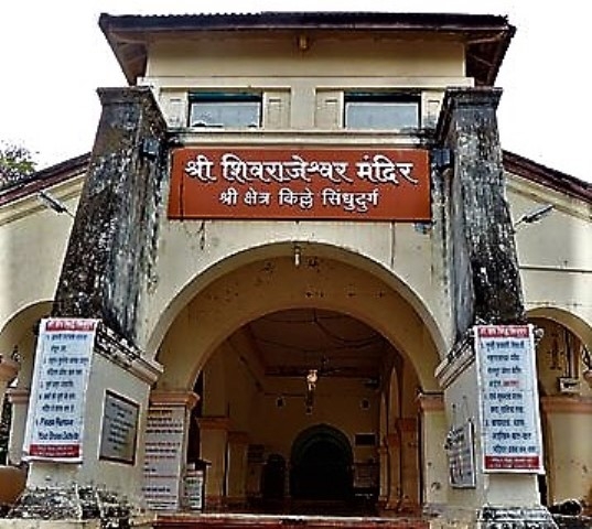 शिवराजेश्वर मंदिर : किल्ल्याकडे पुढे चालत जात असताना समोरच श्री शिवराजेश्वराचे मंदिर आहे. छत्रपती राजाराम महाराजांनी नावाड्याच्या वेशात वीरासनात बसलेली छत्रपती शिवाजी महाराजांची प्रतिमा शिवराजेश्वर मंदिरात स्थापन केलेली आहे. स्वराज्याचे आद्य संस्थापक छत्रपती शिवाजी महाराजांचे हे एकमेव मंदिर आहे. मंदिरातील पूजा करण्याचा मान संकपाळ घराण्याकडे आहे. शिवराजेश्वर मूर्तीला पूजा केल्यानंतर सोन्याचा अथवा चांदीचा मुखवटा बसवला जातो. त्यामुळे मंदिरातील शिवराजेश्वराची मुर्ती अतिभव्य, सुंदर आणि उठावदार दिसते.