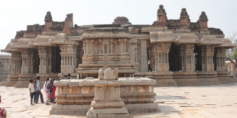 “लवकरच १३३६ मध्ये विद्यारण्य स्वामींच्या मार्गदर्शनाने हरिहर आणि बुक्काने विजयनगरचे साम्राज्य स्थापन केले. जवळ जवळ पावणे दोनशे वर्षांनी, कृष्णदेवराय विजयनगरचा सम्राट झाला. विष्णूभक्त कृष्णदेवरायाने, मूर्तीच्या संरक्षणार्थ, पंढरपूर येथील विठ्ठलाची मूर्ती विजयनगरला नेली. या मूर्तीची स्थापना विजयनगरच्या अत्यंत सुंदर व भव्य विठ्ठल मंदिरात केली. या मंदिरातील काही विशेष बाबी म्हणजे – सप्तस्वरांचे खांब, पडदे लावायला छताच्या बाहेरच्या बाजूने दगडी सळ्या आणि दगडी लामणदिवे! समोरील पटांगणात एक दगडी कोरीव रथ आहे ज्याची चाके अधांतरी असून फिरू शकतात.”