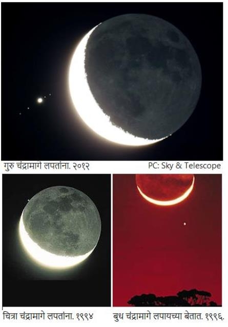 “होय! कधी कधी गुरु, शुक्र, मंगळ वगैरे मंडळी सुद्धा चंद्रा मागे लपतात. चंद्राच्या मागे लपणारी, किंवा कधी चंद्रकोरीच्या अतिशय जवळून जाणारी शुक्राची चांदणी अफलातून दिसते!