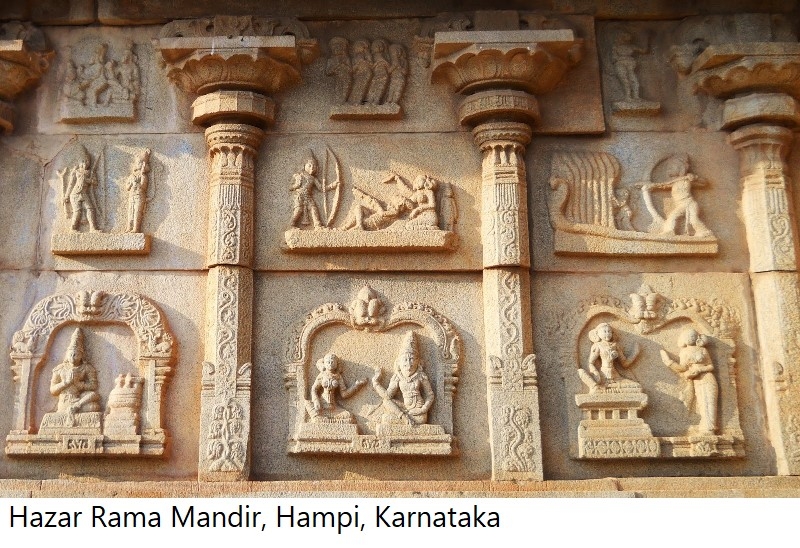 विजयनगर, हम्पी येथील हजारराम मंदिरावर संपूर्ण रामकथा शिल्पात कोरली आहे. तर आग्नेय आशिया मधील अनेक मंदिरांमध्ये रामकथेतील देखावे कोरले आहेत.