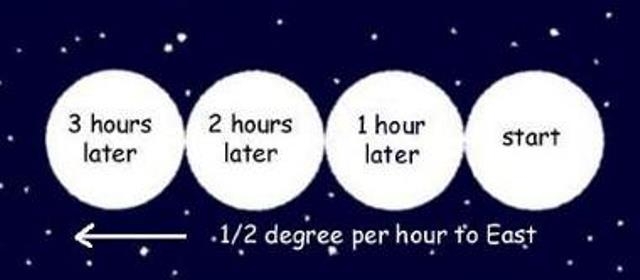“योग्य बोललास सुमित! प्रत्येक तासाला चंद्र साधारण १/२ अंश पुढे सरकतो. उगवता चंद्र एखाद्या ताऱ्याजवळ पहिला, तर मावळतांना त्या ताऱ्यापासून थोडा दूर गेलेला दिसतो!