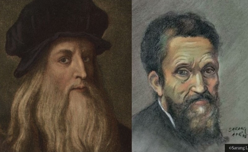 लिओनार्दो दा विंची हा जगप्रसिद्ध चित्रकार मायकलेंजेलोच्याच काळातला. लिओनार्दो मायकलपेक्षा २३ वर्षांनी मोठा. दोघेही आपापल्या क्षेत्रातले अनभिषिक्त सम्राट. पण त्यांच्यातही प्रचंड स्पर्धा होती. अशी स्पर्धा आपल्याकडेही त्यावेळी झाली असेल. समोर दिसणारी उत्तुंग शिल्प, उत्कृष्ठ चित्रं त्यावेळच्या कलाकारांच्या एकमेकांमधल्या स्पर्धेचा परिपाक असतील.