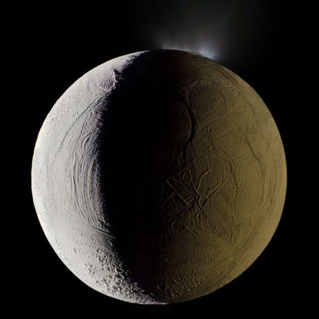 “अर्थातच! आपल्या चंद्रावर जसा पृथ्वीप्रकाश पडतो तसे इतरही ग्रहांच्या चंद्रांवर त्यांचा प्रकाश पडतो. त्यातही गुरु आणि शनी या अति प्रचंड ग्रहांचा त्यांच्या जवळच्या चंद्रांवर पडणारा प्रकाश भारीच असतो. जसे या चित्रात शनीचा Enceladus या त्याच्या चंद्रावर पडलेला प्रकाश दिसत आहे. डावीकडच्या भागात सूर्यप्रकाश पडला आहे, तर उजवीकडच्या भागात पिवळसर रंगाचा शनिप्रकाश पसरला आहे. हे छायाचित्र टिपले होते NASAच्या Cassini या यानाने.