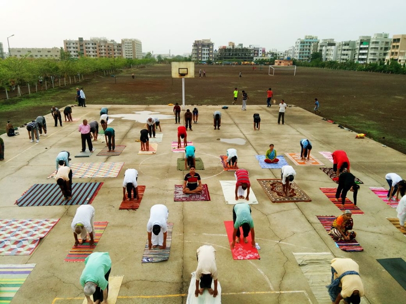 योग दिनाचे औचित्य साधून ‘राष्ट्रीय स्वयंसेवक संघ व भारतीय योग - ध्यान साधना समिती’ माध्यमातून मागील तीन वर्षांपासून योग शिबिराचे आयोजन करण्यात येत आहे. या वर्षी दि. ९ जूनपासून आयोजित केलेल्या शिबिराचा समारोप २१ जून, जागतिक योग दिनी सूर्यनमस्कार करून करण्यात आला. शिबिरात सूर्यनमस्कार, प्राणायाम, जलनीति शुद्धीक्रिया, शरीरसंचालन, सर्वांगासन, कपालभाती, अनुलोम - विलोम, भ्रामरी, अर्धशलभासान, कर्णप्राणायाम, महामुद्रा, तोलूंगासन, वृक्षासन, त्रिकोणासन, उर्ध्वताडासन, नौकासन अशा विविध प्रकारच्या आसनांचा अभ्यास करण्यात आला. वय वर्ष १० ते वय वर्ष ९९ अशा सर्व वयोगटातील नागरिक मोठ्या संख्येने सहभागी झाले होते. योगगुरू अशोक देशपांडे (श्री जनार्दन स्वामी योगाभ्यास मंडळ, नागपूर) यांच्या मार्गदर्शनाखाली सर्व नागरिकांनी मिळून १२७१ सूर्यनमस्कार करून या सूर्यनमस्कार यज्ञाची पूर्णाहुती केली. कार्यक्रमास प्रमुख पाहुणे म्हणून विजय कदम (नाशिक शहर संघचालक, राष्ट्रीय स्वयंसेवक संघ) हे उपस्थित होते.