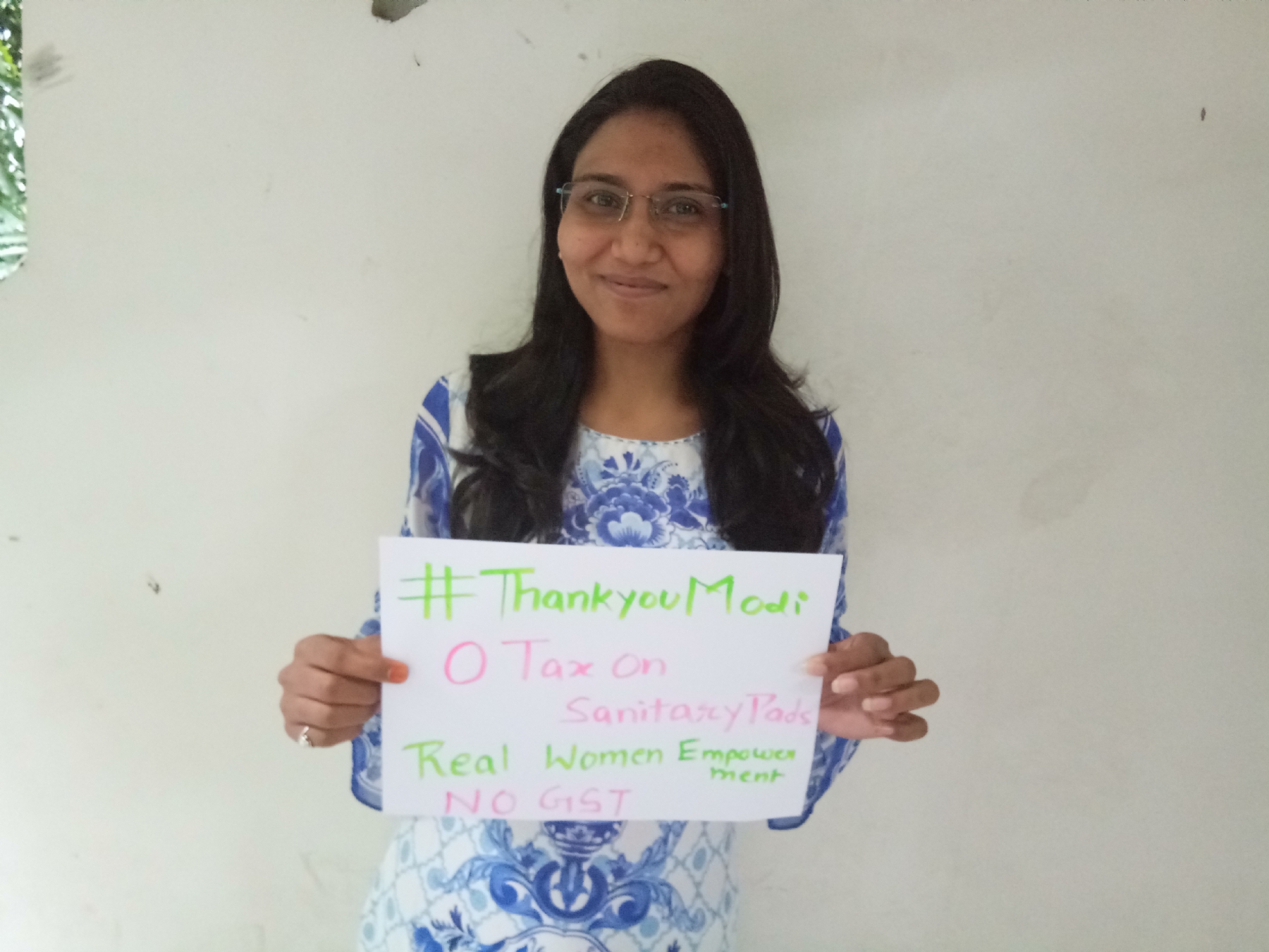 " सॅनिटरी पॅड्स वर ० कर, सरकारचे एक स्तुत्य पाऊल #Thankyoumodi " असे म्हणत अनेक महिलांनी पंतप्रधानांचे आभार मानण्याऱ्या पाट्या हातात घेऊन आपला आनंद व्यक्त केला आहे. "हेच खरे महिला सक्षमीकरण" असे देखील अनेक महिलांनी म्हटले आहे. यावेळी महिलांनी अर्थमंत्री पियूष गोयल यांचे देखील आभार मानले होते.