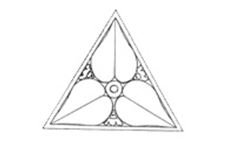 आकाशाकडे टोक असलेला हा समभूज त्रिकोण म्हणजे श्रीविष्णूंच्या छातीवरील श्रीवत्स या संबोधनाने परिचित चिह्नमुद्रा. हा त्रिकोण शिवतत्त्व म्हणजेच पुरुष तत्त्वाचे प्रतीक आहे. यातील तीन पाने म्हणजे राजस-तमस-सत्व या तीन गुणांची प्रतीके आहेत. राजस गुण म्हणजेच विश्वाची वृद्धी आणि क्रियाशील-उद्यमी व्यक्ती. तामसी गुण म्हणजे विश्वाचा संकोच आणि निष्क्रिय-गौण व्यक्ती. सत्व गुण म्हणजे वृद्धी-संकोचाचे संतुलन सांभाळणारी व्यक्ती. (चित्र क्र. 3) ‘श्री’ हे विष्णुपत्नी, श्रीलक्ष्मीचे संबोधन आहे. वैश्विक त्रिगुणांचे प्रतीक असलेला हा पुरुषतत्त्वाचा त्रिकोण म्हणजेच श्रीविष्णू, स्वतःला ‘श्रीवत्स’ म्हणजेच श्रीलक्ष्मीदेवीचा प्रिय पती असे संबोधित करतात. शिव-पार्वती सारखेच हे युगूलधर्माचे आणि निरामय कामजीवनाचे प्रतीक आहे.