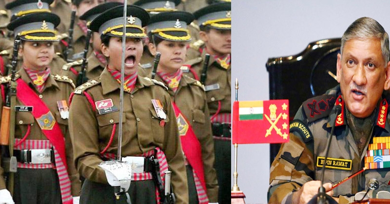 प्रत्यक्ष रणभूमीवर महिलांना लढाईसाठी तैनात केलेले नाही. कारण असंख्य जवान हे खेड्यापाड्यातील असल्याने ते महिला कमांडरचे आदेश पाळतीलच याची खात्री देता येत नाही, असे मत लष्करप्रमुख बिपीन रावत यांनी न्यूज १८ वाहिनीला दिलेल्या मुलाखतींमध्ये व्यक्त केले. राष्ट्रीय रायफलमध्ये समजा एखाद्या महिलेला कमांडिंग अधिकारी म्हणून नेमले गेले तर तिच्या या कमांडच्या कार्यकाळात तिला बाळंतपणी रजाच देता येणार नाही. ती सहा महिने बाहेर रणभूमीवर राहील. यामुळे यासंदर्भात मी तिच्यावर बंधने कशी काय आणू शकतो, असा सवालही त्यांनी केला. काही टीकाकारांना सैन्य प्रमुखांचे हे विधान महिलांवरती एक अन्याय वाटला. त्यांना वाटते की, ही लढाई सैन्यांमधील पुरुष आणि स्त्री यामधल्या समान हक्काची आहे. त्यांच्या हे लक्षात येत नाही की आपले सीमेवरचे शत्रू हे पाकिस्तानी आणि चिनी सैनिक आहेत. देशाच्या सैनिकांना दहशतवादी आणि माओवाद्यांशी लढावे लागते. ही लढाई अतिशय कठीण जंगलामध्ये आणि डोंगरावरती होते. अशा ठिकाणी महिला सैनिक आणि अधिकारी किती यशस्वी ठरतील?