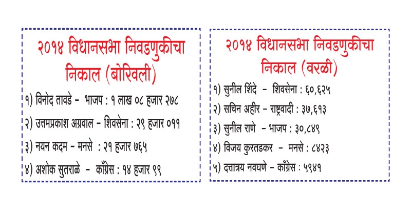 उत्तर मुंबई मतदारसंघात अनेक वर्षे भाजपचाच वरचष्मा आहे. २००४ च्या लोकसभा निवडणुकीत या मतदारसंघातून अभिनेता गोविंदाला लोकसभेत पाठविण्याची चूक केली, असे मतदारांना वाटायला लागल्यानंतर २०१४ आणि २०१९च्या निवडणुकांनंतर त्यांनी पुन्हा भाजपलाच पसंती दिली आहे. या लोकसभा मतदारसंघातील दहिसर, गोरेगाव, बोरिवली विधानसभा मतदारसंघ भाजपचेच आहेत. त्यातून बोरिवली हा भाजपचा सुरक्षित गड आहे. १९८० पासून येथे माजी केंद्रीय मंत्री राम नाईक, भाजपचे वरिष्ठ नेते हेमेंद्र मेहता आणि खा. गोपाळ शेट्टी यांनी या मतदारसंघाचे प्रतिनिधित्व केले आहे. महाराष्ट्र विधानसभेच्या २००४ मध्ये झालेल्या निवडणुकीत गोपाळ शेट्टी यांना येथून ५० हजारांपेक्षा जास्त मताधिक्य मिळाले होते. २००९ मध्येही शेट्टी यांचा मोठ्या मताधिक्क्याने विजय झाला. मात्र, २०१४ मध्ये मात्र गोपाळ शेट्टी खासदार म्हणून निवडून आल्यानंतर तेथे उमेदवार कोण याची चाचपणी झाली. हा भाजपसाठी सुरक्षित मतदारसंघ असल्याने पार्ल्यात वास्तव्य असणारे विनोद तावडे यांना तेथून उमेदवारी देण्यात आली आणि बोरिवली विधानसभा मतदारसंघातून भाजपच्या विनोद तावडे यांनी १ लाख, ०८ हजार, २७८ एवढी मते घेत विजय मिळवला.