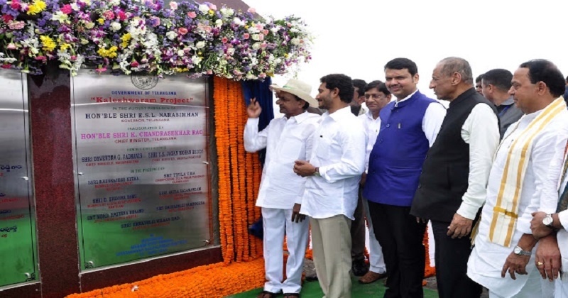 CM @Dev_Fadnavis inaugurates Kaleshwaram lift irrigation project with Telangana Governor ESL Narasimhan, CM K. Chandrasekhar Rao & Andhra Pradesh CM Jagan Mohan Reddy in Telangana this afternoon. pic.twitter.com/zvDMw18CKC