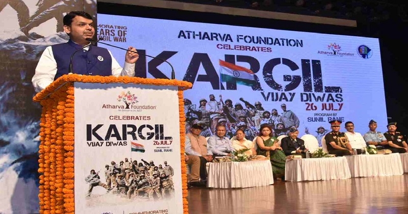 कारगिल विजय दिनाच्या शुभेच्छा उपस्थित मान्यवरांना देताना मुख्यमंत्री फडणवीस म्हणाले, ‘देशभरात २६ जुलै हा दिवस ‘कारगिल विजय दिन’ म्हणून साजरा केला जातो. कारगिल विजयाला २० वर्ष पूर्ण होत असून आपल्या भारतासाठी आज गौरवाचा दिवस आहे. आजच्या दिवशी ऑपरेशन विजयमध्ये शहीद झालेल्या शहिदांचे बलिदान आपण लक्षात ठेवणे आवश्यक आहे’.