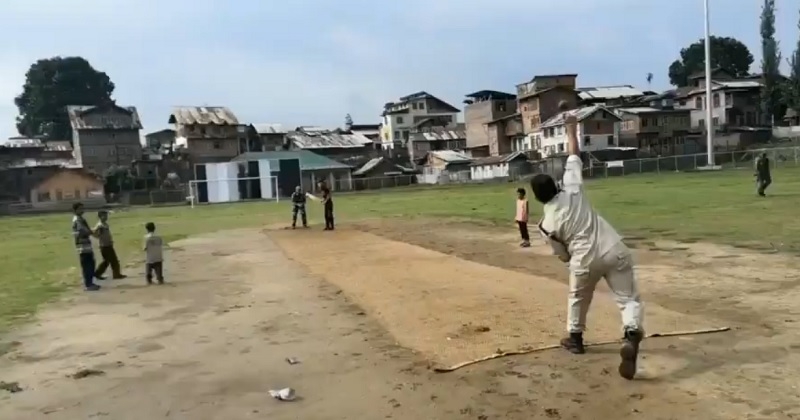 Game changer! Kashmiri boys in downtown Srinagar playing cricket with @crpf_srinagar officer @iamkash_kr behind Jamia Masjid in Nowhatta. Moving to see the officer treat the boys after the game of cricket. Praiseworthy efforts! Let's give peace and love a chance! @crpfindia pic.twitter.com/M3jZ0zN7mJ