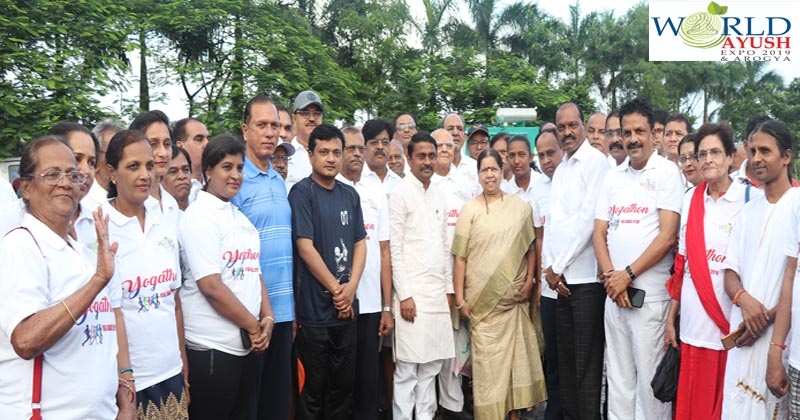 'वर्ल्ड आयुष एक्स्पो २०१९ आणि आरोग्य' चे आयोजन समिती अध्यक्ष आ. प्रशांत ठाकूर आणि बेलापूर विधानसभा मतदार संघ आमदार मंदा म्हात्रे यांनी ध्वज फडकवत योगदौडची सुरुवात केली. तीन, पाच आणि सात किलोमीटरच्या या योगदौडमध्ये महिला आणि पुरुष अशा विविध गटांमध्ये हजारो स्पर्धकांनी सहभाग नोंदवला होता. प्रशांत ठाकूर यांच्या हस्ते कार्यक्रमाचे उद्घाटन करण्यात आले. रविवार सुटीचा दिवस असतानाही पहाटे सहा वाजल्यापासूनच स्पर्धकांनी नोंदणीसाठी तुफान गर्दी केली होती.