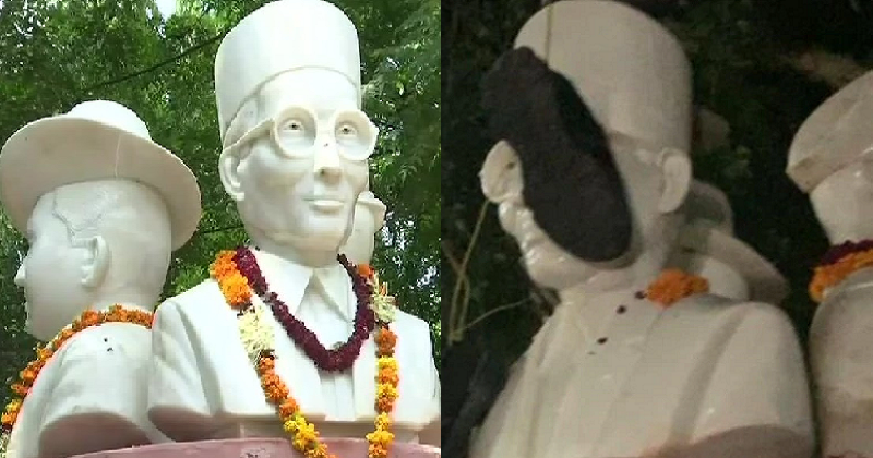 एनएसयूआयचा माजोरडेपणा, सावरकरांच्या पुतळ्याला चपलेचा हार