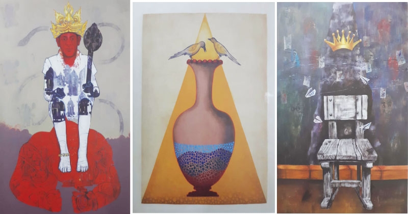कलाकारांची पंढरी अर्थात जहांगिर कलादालन, मुंबई येथे 'सर्क्युलर गॅलरी'मध्ये मुंबई बाहेरच्या कलाकार समूहाचे प्रदर्शन सुरू आहे. हे चारही चित्रकार हे 'पेन्टिंग' क्षेत्रातील असून अर्थातच त्यांच्या कलाकृती या पेंटिंग्ज स्वरूपातील आहेत. ईशा बावीस्कर यांनी 'क्रिएटीव्ह पेन्टिंग्ज' मध्ये 'मास्टर ऑफ आर्ट' पदव्युत्तर शिक्षण घेतलेले आहे. त्यांची कलाकृती ही एका विशिष्ट शैलीदार तंत्राने कॅनव्हासवर अवतरलेली असते. 'गोल्डन क्राऊन' या शीर्षकाची कलाकृती किंवा तशाच शैलीतील इतर कलाकृती पाहताना त्यांनी साधलेले 'क्रिएटीव्ह तंत्र' हेच त्यांच्या प्रत्येक कलाकृतींचे वैशिष्ट्य ठरावे. कॅनव्हासवर मिश्र रंगांचा उचित उपयोग करून त्यांनी कलाकृती चितारल्या आहेत. दुसरे चित्रकार चैतन्य इंगळे यांनी 'व्यक्तिचित्रणात''मास्टर्स डिग्री' प्राप्त केलेली असून नागपूर येथील शासकीय कला महाविद्यालयातून ते उत्तीर्ण झालेले आहेत. अत्यंत 'सिम्ल्पिफाईड' म्हणजे सुलभ आकारांमध्ये मानवाकृती आणि त्यांना दैनंदिन जीवनातील वस्तूंसह विषयबद्ध करून कलाकृती साकारल्या आहेत. 'चैतन्य' यांच्या कलाकृती या 'चैतन्यदायी' भासतात. सध्याच्या क्लीष्ट वा संवेदनाक्षम विषयांना त्यांनी फारच सोप्या आकारांमध्ये चित्रविषय रूपात मांडले आहे. 'एड' नावाची त्यांची एक कलाकृती फारच आशयगर्भ भासते. एका मुळी आवळलेल्या खाली डोके टेकवलेल्या व्यक्तीच्या पाठीवर मुकुट आणि गदा हातात घेतलेल्या पांढरे वस्त्र परिधान केलेल्या व्यक्तीने वजन देऊन विसावा घेतलेला आहे. पाहणार्याच्या विचारांतून हवा तसा अर्थ शोधता येईल, अशा त्यांच्या कलाकृती आहेत.
