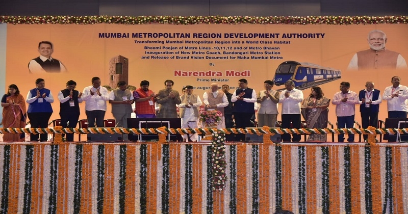 मुंबई : पंतप्रधान नरेंद्र मोदी आज महाराष्ट्र आणि औरंगाबादच्या दौऱ्यावर आहेत. महाराष्ट्राची आर्थिक राजधानी असलेल्या मुंबईतील वांद्रे येथील बीकेसी मैदानावर आयोजित कार्यक्रमात मेट्रो मार्ग १०,११,१२ आणि मेट्रो भवनचे भूमिपूजन तसेच पहिल्या मेट्रो कोच व बाणडोंगरी मेट्रो स्थानकाचेही पंतप्रधान नरेंद्र मोदी यांनी उद्घाटन केले. दरम्यान याच वेळी मेट्रो मुंबईच्या 'ब्रॅण्ड व्हिजन डॉक्युमेंट' चे देखील पंतप्रधानांच्या हस्ते प्रकाशन करण्यात आले. या पार्श्वभूमीवर आज तीन मेट्रो मार्गांची पायाभरणी करण्यात आली. या तीन मार्गांमुळे शहरातील मेट्रोचे जाळे ४२ किलोमीटरने वाढणार आहे.