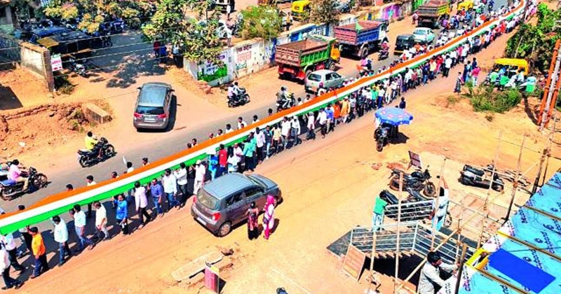 विशाल तिरंग्यासह लक्षवेधी ठरली कुडाळवासीयांची रॅली; ढोलताशांच्या गजरात पालखीतून संविधानाची मिरवणूक