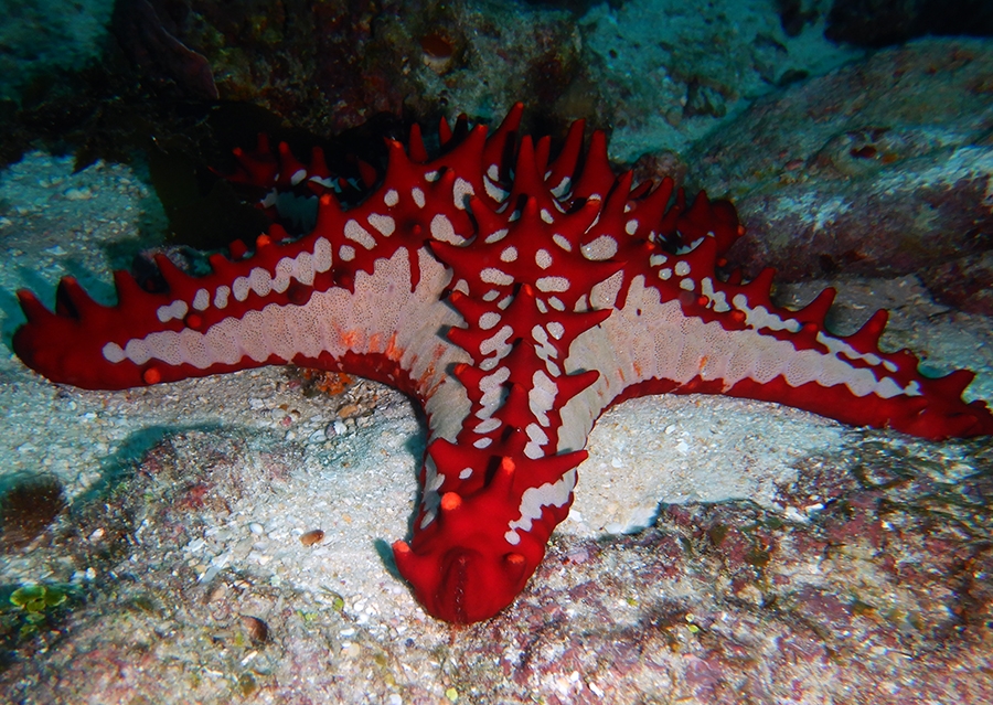 उत्सुकतेने आम्ही पुढे सरकलो. आमच्या आश्चर्यात भर पडली. समुद्राच्या मजल्यावर आम्ही बहुरंगी रीफ माशांची खरी ‘सिम्फनी’ पाहिली. शेंदरी लाल, कॅनरी पिवळा, लिंबूवर्गीय केशरी आणि गर्द जांभळ्या रंगाच्या विपुलतेमध्ये आम्ही खडकाच्या काठावर वाढणार्‍या दाट झाडीत काही काळ पोहत होतो. हे सगळे जणू काही विद्युत निळ्या समुद्राच्या पार्श्वभूमीवर होते. आम्ही ‘ग्रुपर्स’ आणि ‘स्नॅपर्स’ना पसमुद्र तळावरील खडकांमध्ये खड्ड्यांमध्ये धडपडताना पाहिले. ते ही अशा ठिकाणी जिथे क्वचितच कोणी गेले असेल.