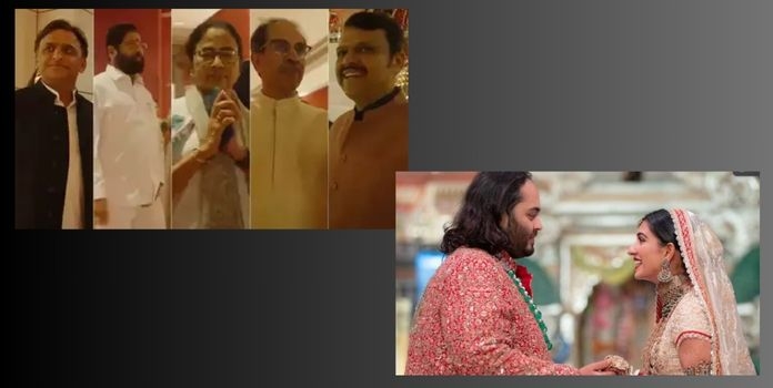 याशिवाय, पश्चिम बंगालच्या विद्यमान मुख्यमंत्री ममता बॅनर्जी, स्मृती इराणी, अभिषेक मनु सिंघवी, अखिलेश यादव, लालूप्रसाद यादव, असे राजकीय क्षेत्रातील बरेच मान्यवर या लग्नसोहळ्याला अनंत-राधिकाला आशीर्वाद देण्यासाठी उपस्थित होते.
