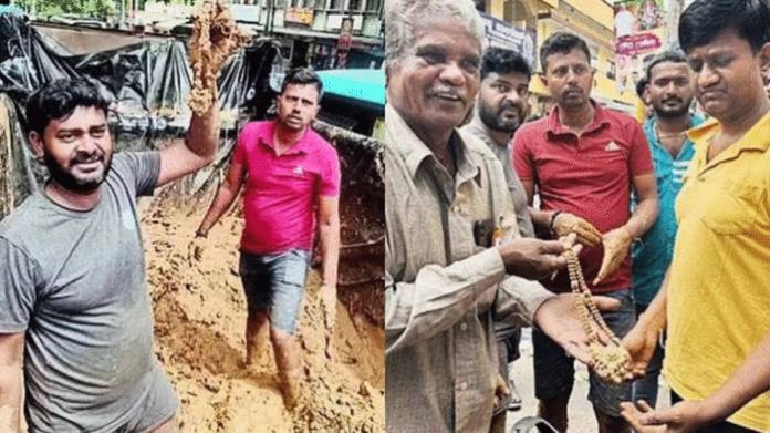 मुंबई : पश्चिम बेंगळुरूमधून एक रंजक बातमी समोर आली आहे. एका शिक्षक कुटुंबाने तब्बल ४ लाख रुपये किमतीची ६० ग्रॅम वजनाची सोन्याची चैन घरात स्थापना केलेल्या गणेश मूर्तीला घातली होती, मात्र मूर्तीचे विसर्जन करण्यापूर्वी ते ती चैन काढून घेण्यास विसरले आणि त्यांनी तसेच मूर्तीचे विसर्जन केले. जेव्हा विसर्जनानंतर सोन्याची चैन काढण्याचा आपल्याला विसर पडल्याचे त्यांच्या लक्षात आले तेव्हा त्यांनी लगेच चैनीचा शोध सुरू केला. १० तासांच्या शोधकार्यानंतर अखेर ती सोन्याची चैन सापडली. या कालावधीत सुमारे १० हजार लिटर पाणी पंपच्या साहाय्याने बाहेर काढण्यात आले.