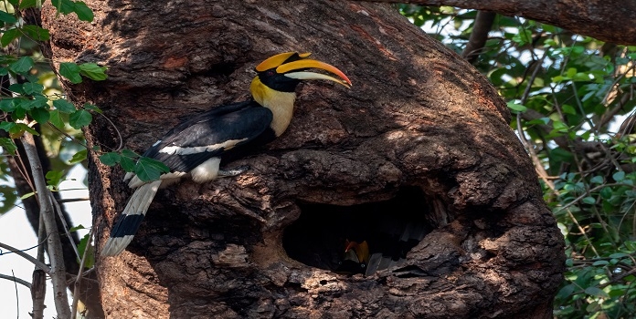 मुंबई (अक्षय मांडवकर) - देवरुखच्या 'सह्याद्री संकल्प सोसायटी'ने रत्नागिरीतील पाच तालुक्यांमधून धनेशाच्या जवळपास ६० घरट्यांच्या (ढोल्या) नोंदी केल्या आहेत (hornbill conservation project in konkan). सध्या कोकणात सुरू असणाऱ्या धनेश पक्ष्यांच्या विणीचा हंगाम सुरू आहे (hornbill conservation project in konkan). या घरट्यांच्या निरिक्षणाचे काम संस्थेचे कार्यकर्ते स्थानिक धनेशमित्रांच्या मदतीने करत असून त्यामधून जन्मास येणाऱ्या पिल्लांच्या नोंदीही घेण्यात येणार आहेत (hornbill conservation project in konkan). गेल्या काही वर्षांमध्ये कोकणातील धनेश पक्ष्यांच्या घरट्यांच्या संख्येत आणि विणीच्या यशाच्या दरात प्रचंड घट झाली आहे. (hornbill conservation project in konkan)