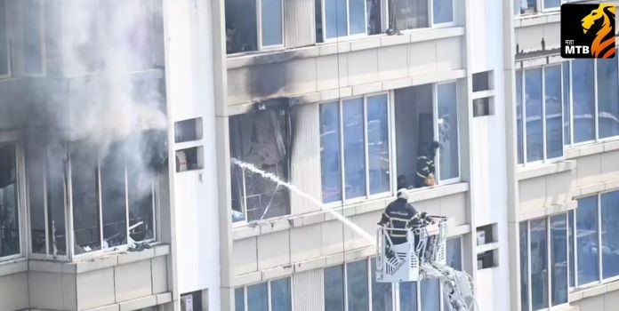 मुंबई : (Jogeshwari Fire ) जोगेश्वरी पश्चिममधील जेएमएस बिजनेस पार्क या इमारतीला गुरूवार दि. २३ ऑक्टोबर रोजी सकाळी १० : ३५ च्या सुमारास भीषण आग लागली. माध्यमांद्वारे मिळालेल्या माहितीनुसार, ही आग या इमारतीच्या सातव्या मजल्यावर लागली होती. या आगीत इमारतीचे तब्बल चार मजले जळून खाक झाले असून, सुदैवाने या घटनेत कोणत्याही प्रकारची जीवितहानी झालेली नाही.