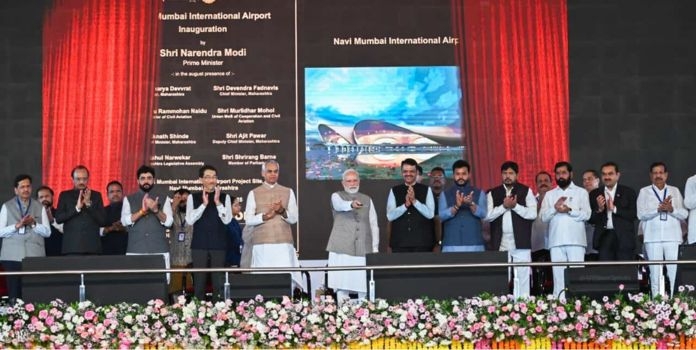 बुधवार, ८ ऑक्टोबर रोजी पंतप्रधान नरेंद्र मोदी यांच्या शुभहस्ते नवी मुंबई आंतरराष्ट्रीय विमानतळ आणि मुंबई मेट्रो तीनच्या अंतिम टप्प्याचा लोकार्पण सोहळा पार पडला. यावेळी त्यांच्या हस्ते राज्यातील ४१९ औद्योगिक प्रशिक्षण संस्था आणि १४१ शासकीय तांत्रिक विद्यालयात अल्पमुदतीच्या अभ्यासक्रमांचाही शुभारंभ करण्यात आला. यावेळी राज्यपाल आचार्य देवव्रत, केंद्रीय हवाई वाहतूक मंत्री किंजरापू नायडू, मुख्यमंत्री देवेंद्र फडणवीस, उपमुख्यमंत्री अजित पवार, उपमुख्यमंत्री एकनाथ शिंदे, केंद्रीय राज्यमंत्री मुरलीधर मोहोळ, कौशल्य, रोजगार, उद्योजकता व नाविन्यता मंत्री मंगलप्रभात लोढा यांच्यासह इतर मान्यवर उपस्थित होते.