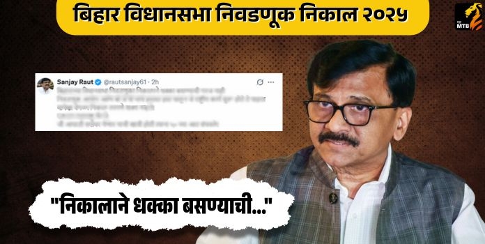 संजय राऊत यांनी एक्सवर केलेल्या पोस्टमध्ये बिहार विधानसभा निवडणुकीच्या निकालावर भाष्य करताना म्हटले आहे की, “बिहार विधानसभा निवडणुकीच्या निकालाने धक्का बसण्याची गरज नाही. निवडणूक आयोग आणि बी जे पी यांचे हातात हात घालून जे राष्ट्रीय कार्य सुरू होते ते पाहता यापेक्षा वेगळा निकाल लागणे शक्य नव्हते!. एकदम महाराष्ट्र पॅटर्न!. जी आघाडी सत्तेवर येणार याची खात्री होती त्यांना ५० च्या आत संपवले!” अशी प्रतिक्रिया संजय राऊत यांनी दिली आहे.