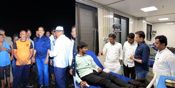तसेच त्यांना सर्वोत्तम सुविधा मिळाव्यात अशा सूचना प्रशासनाला त्यांनी दिल्या. या दुर्घटनेतील मृताच्या वारसांना सरकारतर्फे पाच लाख रुपयांची मदत जाहीर करण्यात आली असून जखमींच्या उपचाराचा संपूर्ण खर्च राज्य शासनाच्या वतीने करण्यात येणार आहे.