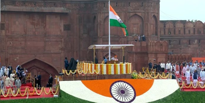 नवी दिल्ली : (Independence Day 2025) भारत आज आपला ७९ वा स्वातंत्र्य दिन मोठ्या उत्साहात साजरा करत आहे. राजधानी दिल्लीतील ऐतिहासिक लाल किल्ल्यावर पंतप्रधान नरेंद्र मोदी यांच्या हस्ते ध्वजारोहणाचा सोहळा पार पडला. यावेळी पंतप्रधान मोदींनी सलग १२ व्यांदा ध्वजारोहण केले आहे. पंतप्रधानांनी देशवासियांना संबोधित केले. 'नवा भारत' ही यंदाची थीम असून, २०४७ पर्यंत समृद्ध आणि आत्मनिर्भर भारत निर्माण करण्याचे ध्येय आहे.