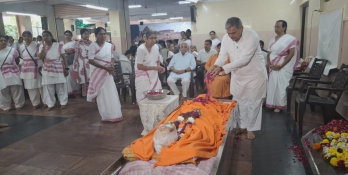 मुंबई : राष्ट्र सेविका समितीच्या नागपूर येथील मुख्य कार्यालयात शुक्रवारी सकाळी वंदनीय प्रमिलताई मेढे यांना समितीच्या सेविकांनी श्रद्धांजली वाहिली. या प्रसंगी राष्ट्रीय स्वयंसेवक संघाचे सरकार्यवाह दत्तात्रेय होसबाळे देखील उपस्थित होते. प्रमिलताईंना आदरांजली अर्पण करत ते म्हणाले, "प्रमिलताईंचे कार्य आणि जीवन हे येणाऱ्या पिढ्यांसाठी दीपस्तंभासारखे सतत प्रेरणा देणारे राहील."