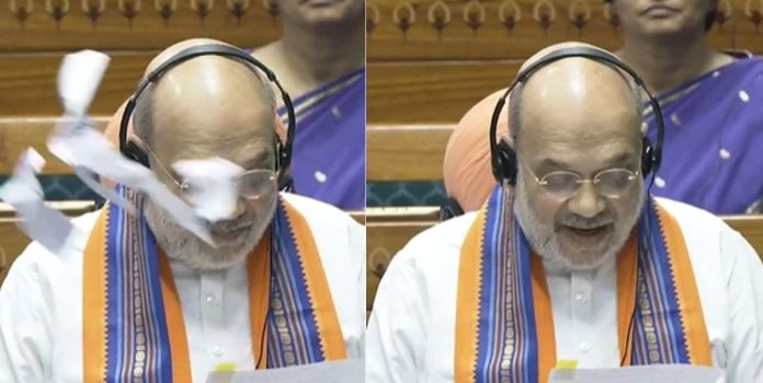 VIDEO | Parliament Monsoon Session: Opposition MPs tear copies of three bills introduced by Union Home Minister Amit Shah and throw paper bits towards him in Lok Sabha. Speaker Om Birla adjourns the House amid uproar. #ParliamentMonsoonSession#MonsoonSession