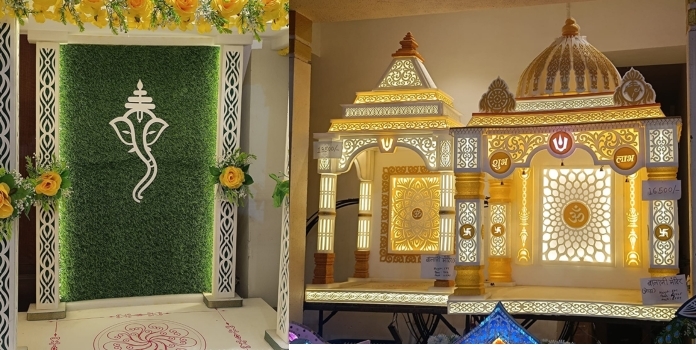 मंदिररुपी आरासांना ग्राहकांची पसंतीपर्यावरण पूरक मखरांची खरेदी करीत असताना, दुसऱ्या बाजूला आकर्षक देखाव्यांमध्ये मंदिर रुपी आरासांना सुद्धा ग्राहकांची पसंती असल्याचे बघायला मिळाले आहे. सिद्धिविनायक मंदिरापासून ते अगदी तिरुपती बालाजी मंदिरापर्यंत वेगवेगळ्या प्रकारचे आकर्षक देखावे बाजारामध्ये ग्राहकांसाठी उपलब्ध आहेत. अष्टविनायक मंदिरांची प्रतिकृती दाखवणाऱ्या आरसाची किंमत १५,००० रुपये असून, मोठ्या बालाजी मंदिराच्या आरसाची किंमत १६,००० इतकी आहे. भवानी मंदिराची प्रतिकृती दर्शवणाऱ्या मखराची किंमत १५,००० असून लहान आकारांच्या मूर्तींसाठी असलेल्या मंदिरांच्या देखाव्यांची किंमत ३,००० रुपयांपासून सुरू आहे.