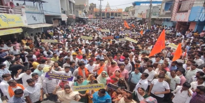 मुंबई : मध्य प्रदेशाच्या उज्जैन येथील खाचरोद भागात काही दिवसांपूर्वी एका २० वर्षांच्या हिंदू युवतीला सादिक नावाच्या जिहादीने फूस लावून पळवून नेले. या घटनेच्या निषेधार्थ हिंदूंची महासभा भरल्याचे दिसून आले. यात शहर आणि गावांमधून आलेल्या सुमारे ६ हजारांहून अधिक हिंदूंनी लव्ह जिहाद विरोधात संघटन शक्ती दाखवून दिली.