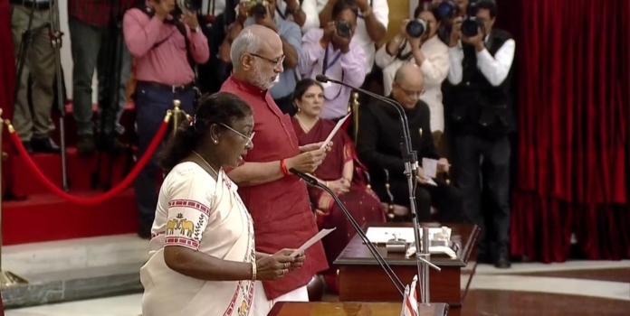 नवी दिल्ली, राष्ट्रपती द्रौपदी मुर्मू यांनी देशाचे १५ वे उपराष्ट्रपती म्हणून सी.पी. राधाकृष्णन यांना राष्ट्रपती भवनातील गणतंत्र मंडपम येथे पदाची आणि गोपनीयतेची शपथ दिली.