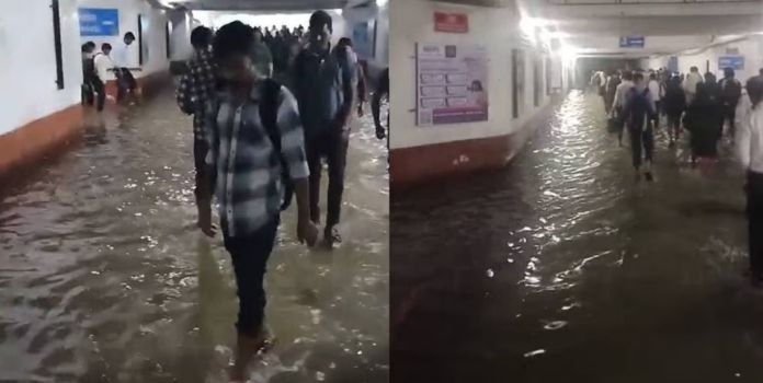खांदेश्वर आणि मानसरोवर रेल्वे स्थानकावर दीड फूट पाणी...