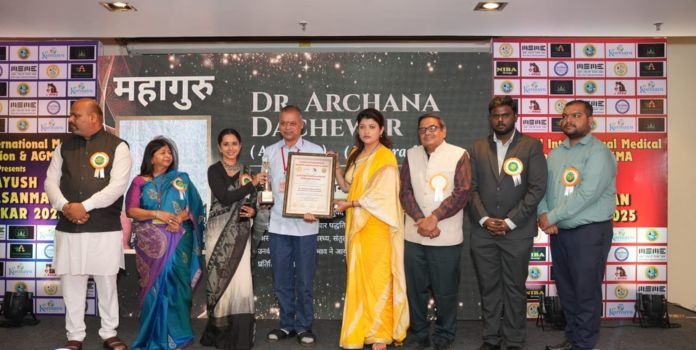 डोंबिवली : डोंबिवली येथील सुप्रसिद्ध डॉ. शैलेश ढवळीकर यांना रविवारी आयुष महासन्मान पुरस्काराने सन्मानित करण्यात आले. आयुष इंटरनॅशनल मेडिकल असोसिएशन व विस्तार केन्द्र- राजकोट टीडीसी (पीपीडीसी) आग्रा एमएसएमई मंत्रालय भारत सरकारची संस्था यांच्या संयुक्त विद्यमाने हा पुरस्कार देण्यात आला.
