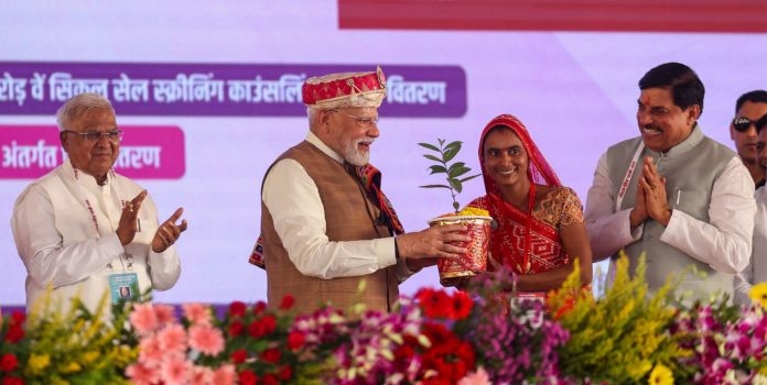 यावेळी पंतप्रधानांनी ‘स्वस्थ नारी, सशक्त परिवार’ या राष्ट्रीय मोहिमेचा शुभारंभ केला. मातृशक्तीच्या आरोग्यासाठी रक्तदाब, मधुमेह, कर्करोग, क्षयरोग, अॅनिमिया आदी आजारांची मोफत तपासणी या मोहिमेत केली जाणार असून त्यावरील खर्च सरकार उचलणार असल्याचे त्यांनी सांगितले. पुढील उपचारासाठी आयुष्मान भारत कार्ड संरक्षण कवच ठरेल, असेही ते म्हणाले. याशिवाय आदिवासी समाजातील सिकल सेल अनिमियाविरोधी राष्ट्रीय मोहिमेचा आढावा घेत त्यांनी सांगितले की, या आजारावर मात करण्यासाठी मध्य प्रदेशात मोठ्या प्रमाणावर तपासणी व जनजागृती केली जात आहे.