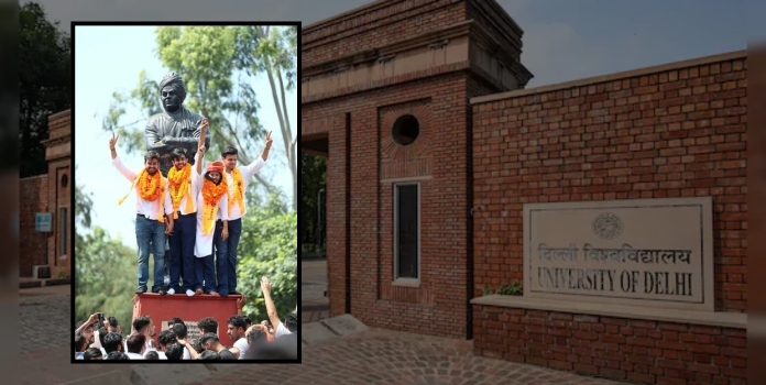नवी दिल्ली, दिल्ली विद्यापीठाच्या विद्यार्थी संघटनेच्या (डुसू) निवडणुकीत अखिल भारतीय विद्यापीठाने (अभाविप) दणदणीत विजय मिळवला आहे. अभाविपने अध्यक्षपदासह तीन जागा जिंकल्या आहेत. शुक्रवारी (१९ सप्टेंबर) जाहीर झालेल्या निकालांमध्ये त्याचवेळी काँग्रेसशी संलग्न असलेल्या एनएसयुआयला उपाध्यक्षपदावर समाधान मानावे लागले आहे.