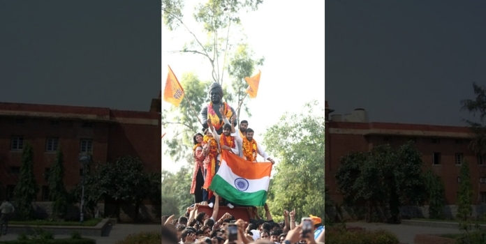 नवी दिल्ली, अखिल भारतीय विद्यार्थी परिषद (अभाविप) ने दिल्ली विद्यापीठ विद्यार्थी संघ (डुसू) निवडणुकीत पुन्हा एकदा दमदार कामगिरी करत ऐतिहासिक विजयाची नोंद केली आहे. अभाविपने अध्यक्ष, सचिव आणि सहसचिव अशी तीन प्रमुख पदे मोठ्या फरकाने जिंकली आहेत.