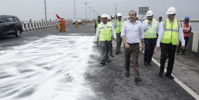 दरम्यान, एमएमआरडीएने दिलेल्या माहितीनुसार महानगर प्रदेश विकास प्राधिकरणाचे आयुक्त डॉ. संजय मुखर्जी यांच्या मार्गदर्शनात शुक्रवार,दि.१९ रोजी अतिरिक्त महानगर आयुक्त व प्रकल्प प्रमुख विक्रम कुमार यांनी २२ किमी लांबीच्या संपूर्ण अटल सेतूची म्हणजेच मुंबईकडे आणि नवी मुंबईच्या दिशेने जाणाऱ्या मार्गाची पाहणी केली. या पाहणीत एमएमआरडीएच्या पथकाने नवी मुंबईकडे जाणाऱ्या मार्गावरील केवळ २ किमीच्या मर्यादित पट्ट्यात (कि.मी. १४ ते १६ दरम्यान) काही ठिकाणी पृष्ठभागावर किरकोळ झीज झाल्याचे निदर्शनास आणले. याचे प्रमुख कारण म्हणजे सतत पडणारा जोरदार पाऊस व अविरत वाहतूक प्रवाह यामुळे ही झीज झाली असल्याचे नमूद करण्यात आले आहे. या पथकाने कंत्राटदार देवू (Daewoo)– टाटा इन्फ्रास्ट्रक्चर प्रोजेक्ट्स यांना या सेतूवरील हा पृष्ठभाग दुरुस्त करण्याचे काम पुढील पाच दिवसांत पूर्ण करण्याचे निर्देश दिले आहेत. हे काम वेळेत पूर्ण झाले नाही तर कंत्राटदाराविरुद्ध अधिक कठोर कारवाई करण्यास स्पष्टपणे सांगण्यात आले आहे.