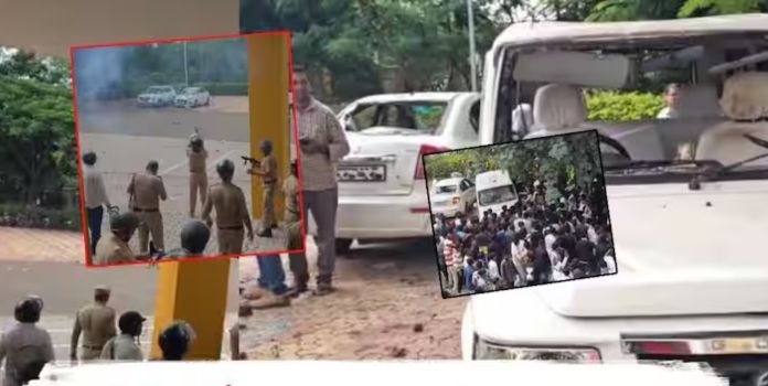 नंदुरबार : काही दिवसांपूर्वी नंदुरबार शहरात दोन युवकांमध्ये बेदम मारहाणीची घटना झाली होती. या घटनेत गंभीर जखमी झालेल्या जय वळवी या तरूणाचा उपचारांदरम्यान मृत्यू झाला. त्यामुळे जय वळवी या आदिवासी तरूणाच्या हत्येच्या निषेधार्थ बुधवार २४ सप्टेंबर रोजी नंदुरबार शहरातील जिल्हाधिकारी कार्यालयावर मूक मोर्चा काढण्यात आला होता. मात्र काही समाजकंटकांनी कार्यालयाबाहेर उभ्या असलेल्या गाड्यांची तोडफोड करून या मूक मोर्चाला हिंसक वळण दिले आहे.