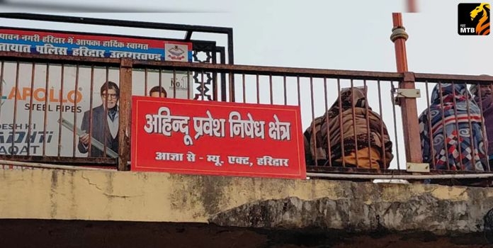 मुंबई : (Haridwar Non-Hindu Ban) उत्तराखंडमधील हरिद्वारच्या हर की पौडी परिसरात 'गैरहिंदूंना प्रवेश बंदी' (Haridwar Non-Hindu Ban) असे लिहिलेले पोस्टर्स लावण्यात आले आहेत. हर की पौडी परिसराची देखरेख करणारी संस्था गंगा सभेने हे पोस्टर्स लावल्याचे वृत्त आहे. गंगा सभेचे म्हणणे आहे की हे ठिकाण सनातन संस्कृतीचे श्रद्धेचे केंद्र आहे आणि गैरहिंदूंना प्रवेश पूर्णपणे प्रतिबंधित केला पाहिजे. या संदर्भात गंगा सभेने प्रशासनाकडे १९१६ च्या नगरपालिका उपनियमांची कठोरपणे अंमलबजावणी करण्याची मागणी केली.(Haridwar Non-Hindu Ban)