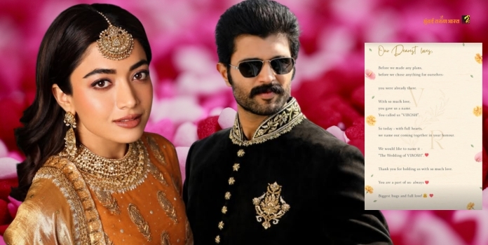 मुंबई : दाक्षिणात्य चित्रपटसृष्टीतील लोकप्रिय जोडी रश्मिका मंदाना (Rashmika Mandanna) आणि विजय देवरकोंडा (Vijay Deverakonda) अखेर लग्नाच्या चर्चांना पूर्णविराम देत स्वतःच मोठी घोषणा केली आहे. गेल्या काही वर्षांपासून त्यांच्या नात्याबाबत विविध चर्चा रंगत होत्या. मात्र आता या दोघांनी आपल्या लग्नाला अधिकृत स्वरूप देत त्याला खास नाव दिलं आहे ते म्हणजे विरोश (VIROSH) विजय आणि रश्मिका यांच्या नावापासून हे छान नाव त्यांनी आपल्या नात्याला दिलं आहे.