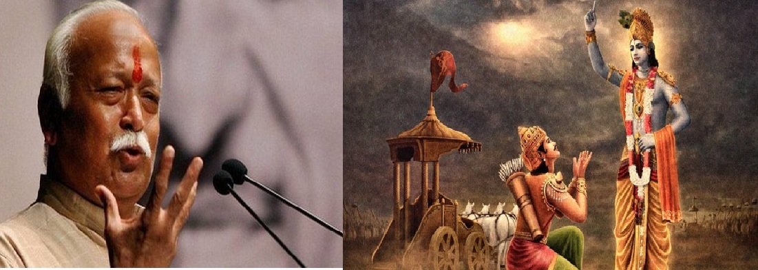 भगवंतांनी युद्धभूमीवर कौंतेयाला केलेला बोध, या परिस्थितीत खंबीरपणे उभे राहण्यासाठीचा आहे. तो केवळ, वेळप्रसंगी स्वकीयांविरुद्धदेखील उभे ठाकण्यासाठी बळ देणारा बोध नाही, तर सदासर्वकाळ अधर्माविरुद्ध पाय रोवून उभे राहण्यासाठीचे सूत्र त्यात दडले आहे. अंतिमत: विजय सत्याचाच होतो, तो सृष्टीचा रचिताही शेवटी धर्माच्याच बाजूने उभा राहतो, हा विश्वास त्यात दडला आहे. ‘तदात्मानं सृजाम्यहम्’ हे त्या नियंत्याचेही अंतिमत: ध्येय आहे, हा विश्वास दस्तुरखुद्द भगवंतांनी देण्यात खरंतर माणसात उमेद जागवण्याचे सामर्थ्य आहे. वस्तुत: या विश्वासाच्या बळावरच माणूस कित्येकदा विपरीत परिस्थितीतही भक्कमपणे उभे राहण्याचे कसब पणाला लावतो. प्रतिकूल परिस्थितीशी झगडण्याचे बळ बहुधा त्यातूनच त्याला प्राप्त होत असते. पाप-पुण्याच्या कल्पनेपलीकडेही, सत्याच्या असत्यावरील विजयाच्या ठाम विश्वासाचे महत्त्व दडले आहे. तो विश्वासच माणसाला जगण्याची, लढण्याची प्रेरणा देऊन जातो. केवळ कठीण प्रसंगातच नव्हे, तर चांगल्या काळातही कसोशीनं जगण्या-वागण्याची रीत स्पष्ट करून सांगण्याचे वैशिष्ट्य भगवद्गीतेत आहे. ‘‘दैवजात दु:खाने मनुजा पराधीन केले, त्या पतितांचे केवळ रडणे मला ना रुचले,’’ हे सांगताना कर्मयोगी भगवान श्रीकृष्ण सदैव परिस्थितीशी झगडण्याचा, संघर्षाचा संदेश देतात. संकटांचा बाऊ करून रडत बसणे, खुद्द परमेश्वरालाही रुचत नाही, हा संदेशही त्यातून प्रतिध्वनित होतो, तो वेगळाच! सरसंघचालक डॉ. मोहनजी भागवत जेव्हा, श्रीमद भगवद्गीता घराघरांतून वाचली जावी असा आग्रह धरतात, तेव्हा त्यांनाही कर्मयोगाची तीच परिपाठी पुढे प्रवाहित होणे अपेक्षित असते.